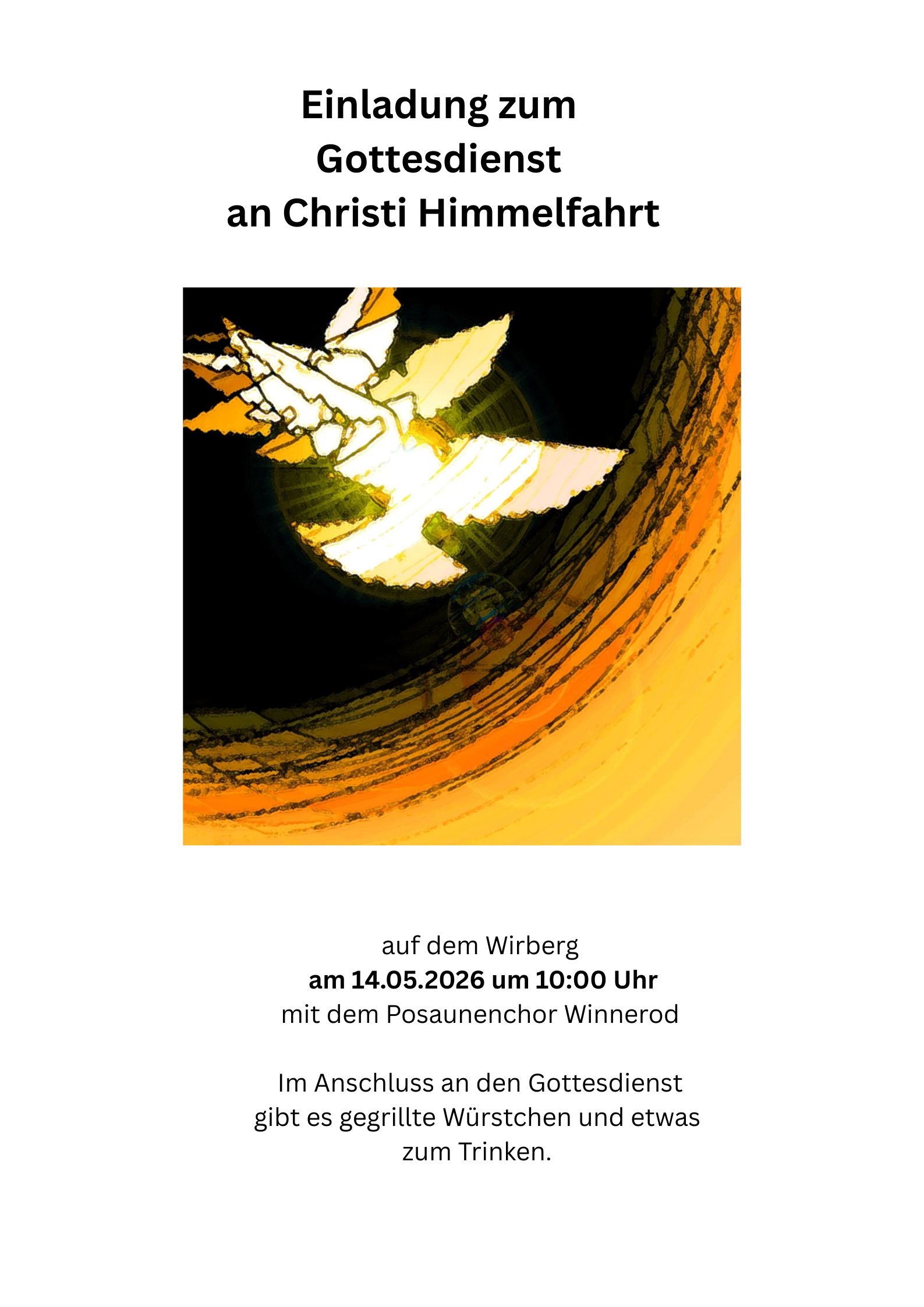 Gottesdienst an Christi Himmelfahrt mit Posaunenchor & Würstchengrillen